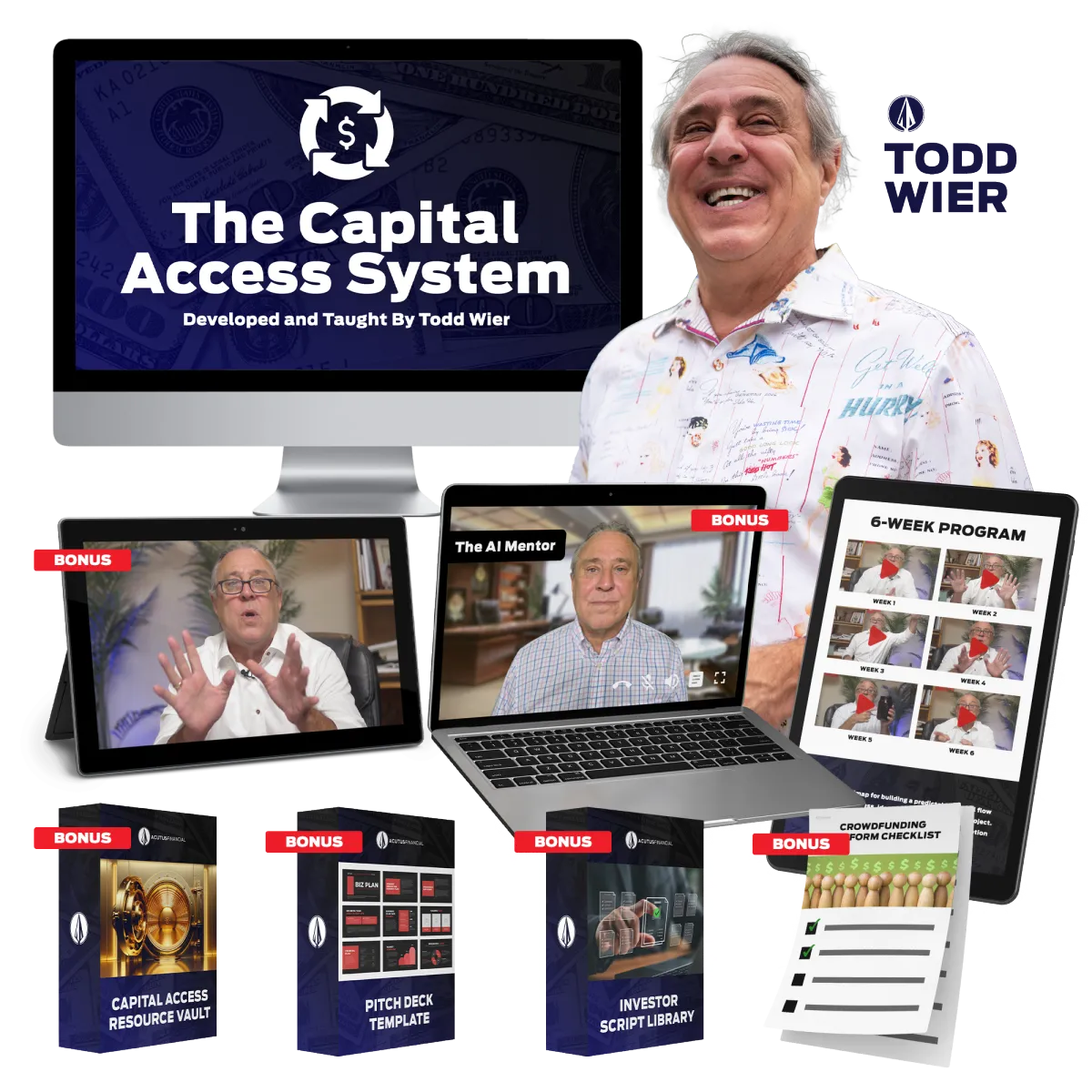 The Capital Access System was built by Todd Wier, a 40-year money-raising expert, who has raised tens of millions in capital and trained hundreds of other wealth-builders to do the same.